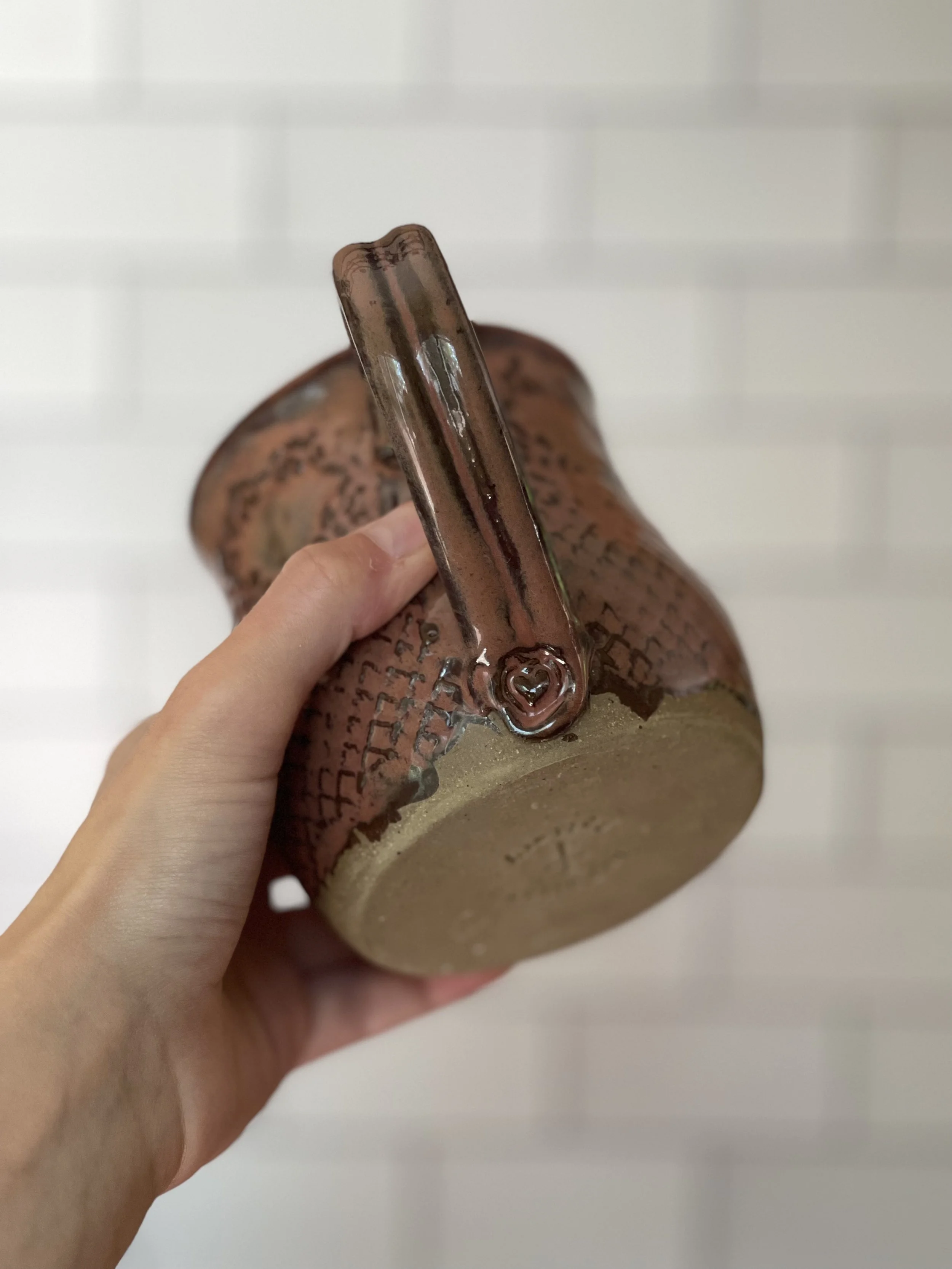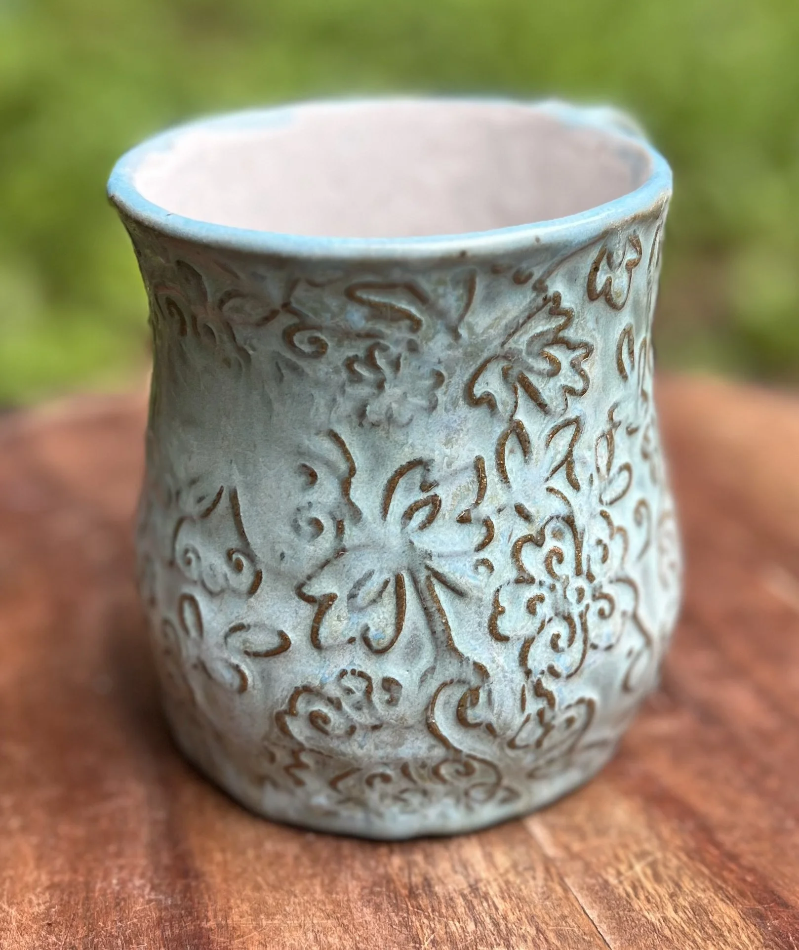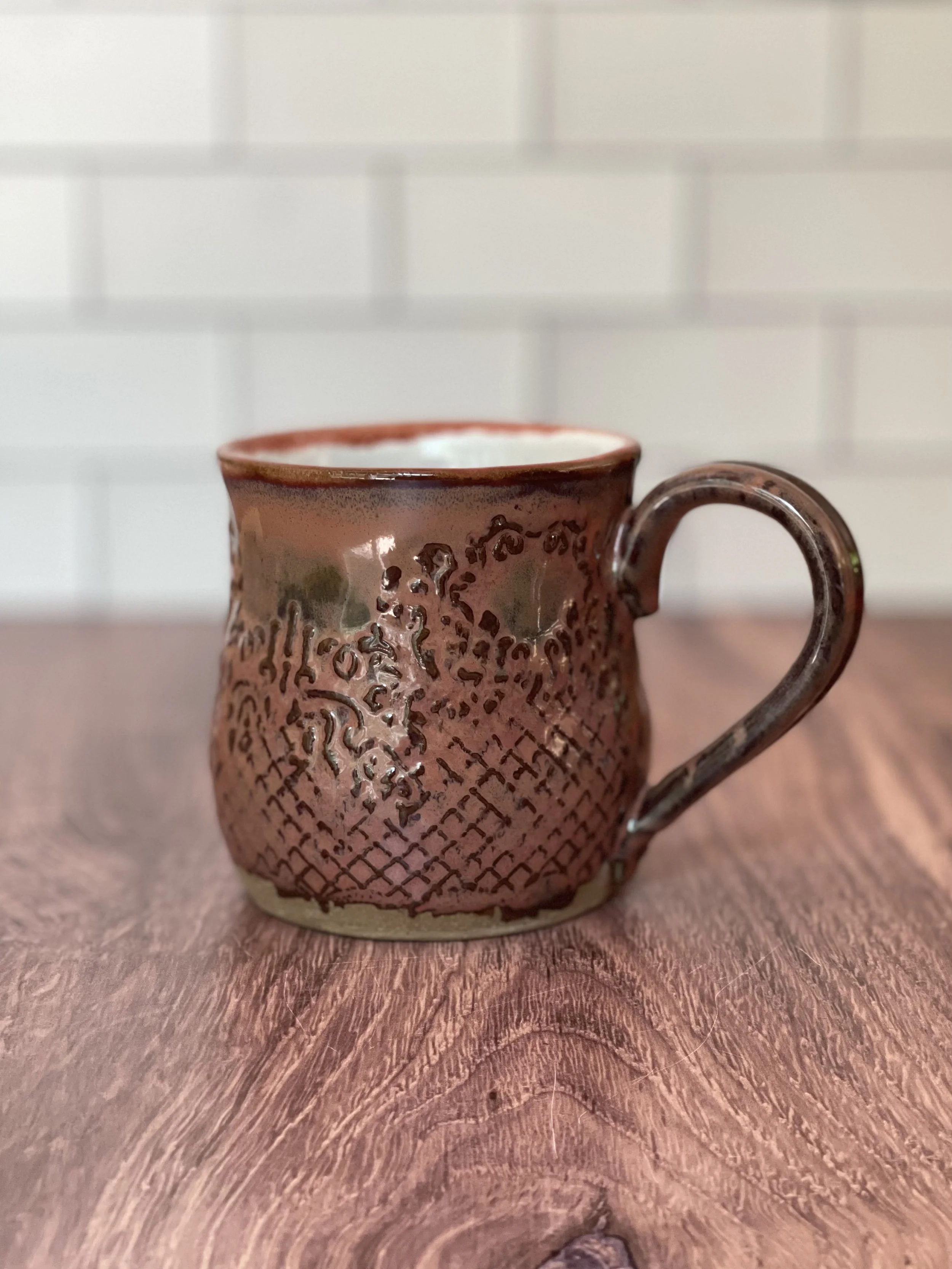 Categories: All Textured Mugs Made To Order In Stock All | Textured Mugs | Made To Order | In Stock | Soap Pumps $45.00 Hiking Kitchen Utensil Holder $45.00 Honey Flux Ball Tree $48.00 Sold out Lace Plum Glazed Mug $30.00 Sold out Blue Planter $40.00 Sold out Ring Holders $9.00 Peach & Lace Mug 2 $30.00 Sold out Peach & Lace Mug $30.00 Sold out Fire and Lace Mug $30.00 Sold out Soft Blue Lace Mug $30.00 Sold out Hand Etched Vase $65.00 Spanish Moss Lace Mug 2 $30.00 Sold out Spanish Moss Lace Mug $30.00 Sold out Sea Shell Butter Dish $45.00 Sold out Blue Rustic Textured Mug $30.00 Sold out Green Leaf Textured Earrings $20.00 Lace Textured Spoon Rest $18.00 Mushroom Spoon Rest $18.00 Rustic Tree Luminary from $18.00 Snowman Luminary $45.00 Green bowl with Celtic Knot $35.00 Sold out Honey Bee Butter Dish $45.00 Sold out Cardinal Mug $30.00 Pink Sunrise Mug $30.00 Sold out Green Mug $30.00 Sold out Peachy Mug $30.00 Sold out Farmhouse Style Mug $30.00 Sold out Fire Mug $30.00 Sold out Blue/Green Lace Mug $30.00 Sold out Honey Flux Butter Dish $45.00 PA Forest Magnet $9.00 Light Blue Lace Mug $30.00 Sold out Lace Mug with a Honey Flux Glaze $30.00 Sold out Beautiful Glazed Mug w/Lace like pattern $30.00 Sold out Northern Lights and Pine Trees Mug $30.00 Sold out Otter Planter from $30.00 Sold out Blue and Lavender Mug $30.00 Footprints in the Sand Mug $30.00 Pitcher/Vase $40.00 Sold out White Butter Dish $45.00 Sold out Flower Frog $11.00 Hiking Mug $31.50 Garden Lady Bug $25.00 Otter Wind Chime Sale Price: $50.00 Original Price: $60.00 Sold out Footprints in the Sand Platter $45.00 Sold out